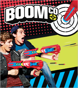 Bei BOOMco geht es darum, Herausforderungen anzunehmen und um Adrenalin-geladenen Spaß mit den starken Blastern. BOOMco-Blaster stehen für coole Feueraction, super Reichweite und extreme Magazin-Kapazität, dabei feuern sie mit Smart Stick Darts, die auf BOOMco-Schildern und -Zielen haften bleiben.Wer immer auf der Suche nach einer Menge Spaß ist und gerne an seine Grenzen geht, bringt alles nötige mit. Jetzt geht es nur noch darum, den richtigen Blaster in den Händen zu haben. Egal ob mit seinen Freunden oder alleine: BOOMco ist da, um den Blaster-fun zu revolutionieren.